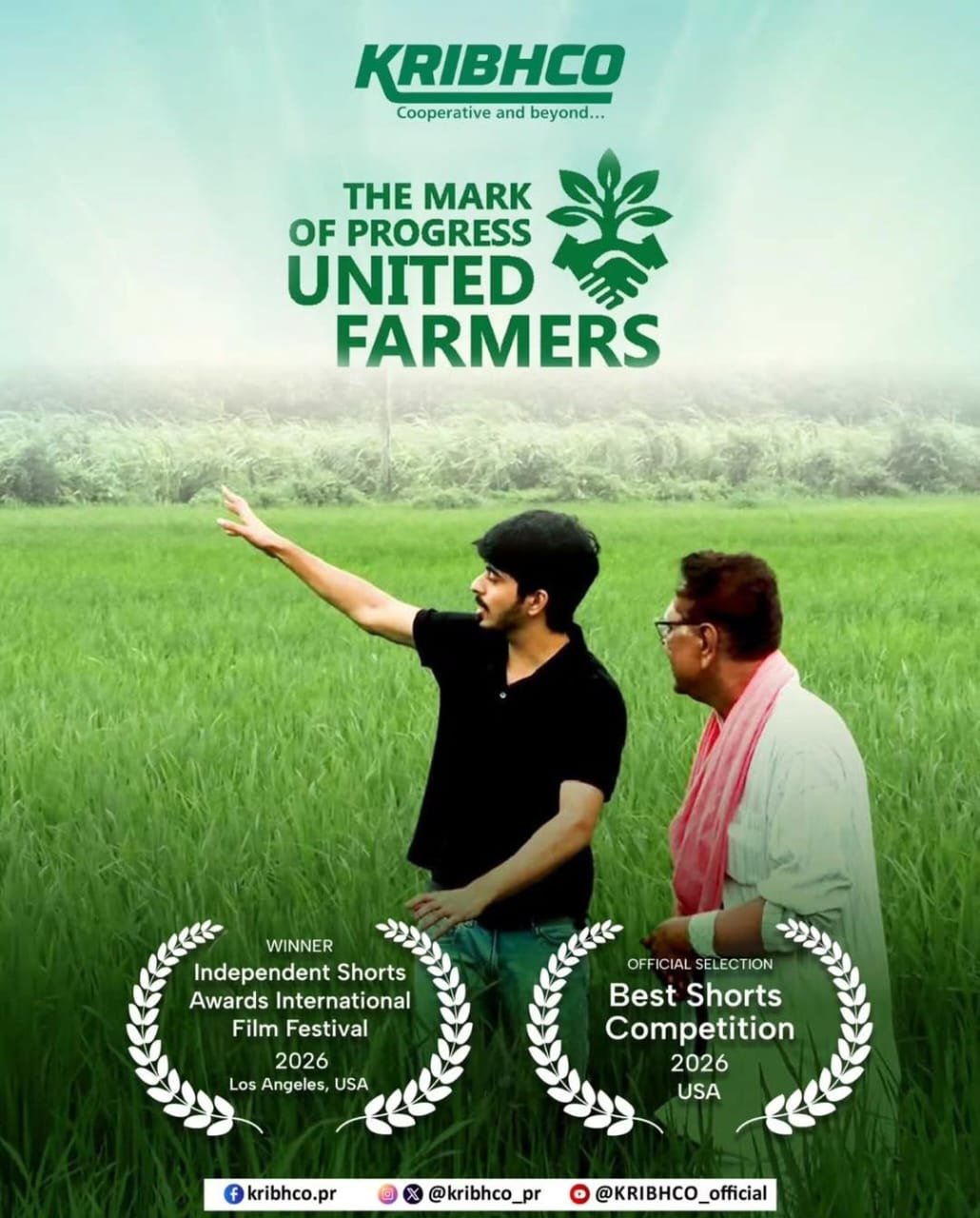कृषक भारती कोऑपरेटिव लिमिटेड (KRIBHCO) की फिल्म “द मार्क ऑफ प्रोग्रेस–यूनाइटेड फार्मर्स (उन्नति की पहचान–एकजुट किसान)” को अंतरराष्ट्रीय स्तर पर बड़ी उपलब्धि मिली है। इस फिल्म को अमेरिका के लॉस एंजिल्स में आयोजित इंडिपेंडेंट शॉर्ट्स अवॉर्ड्स 2026 में विजेता घोषित किया गया है।